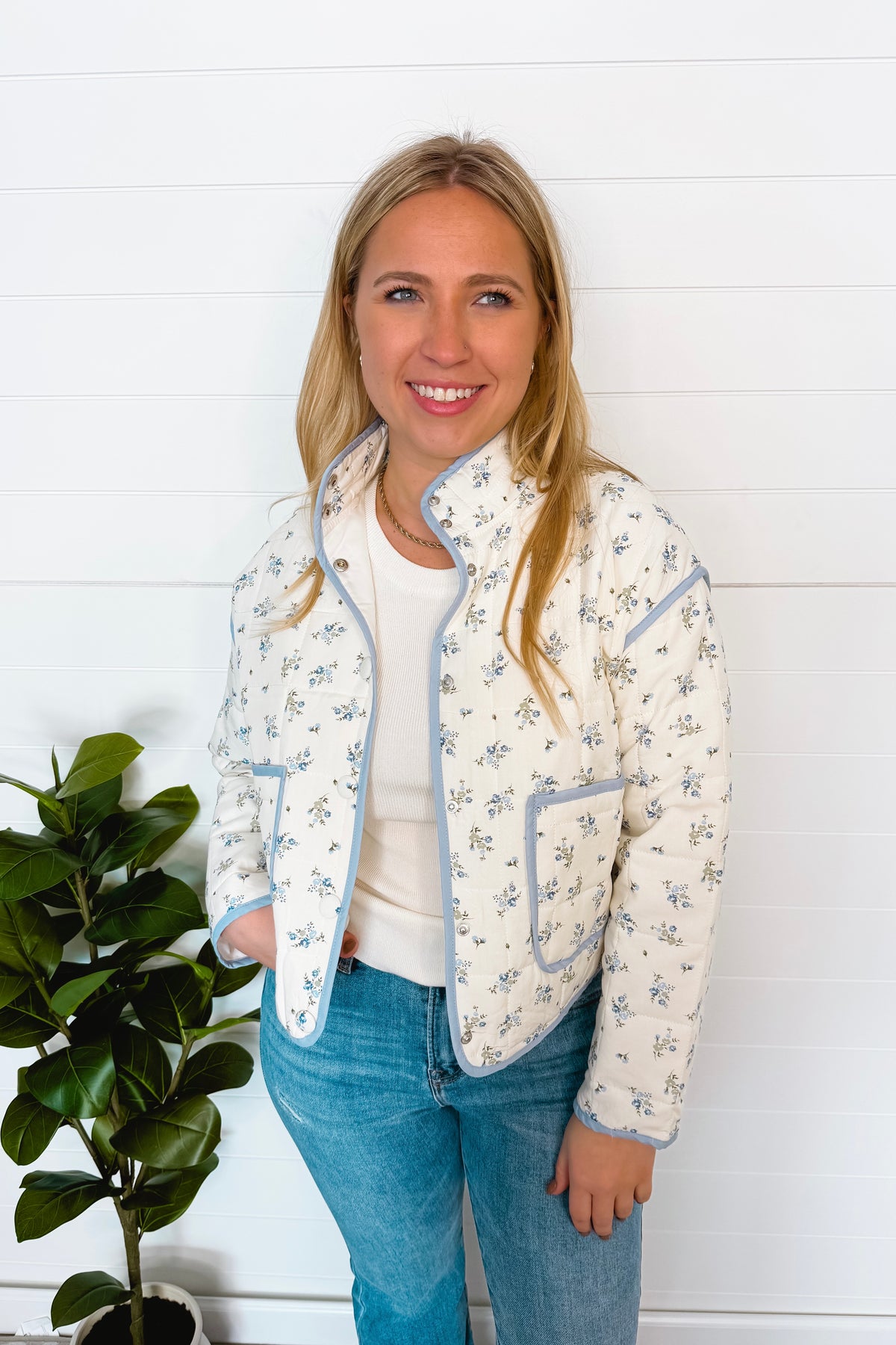 Sunny Horizon Quilted Floral Jacket - Ivory/Blue