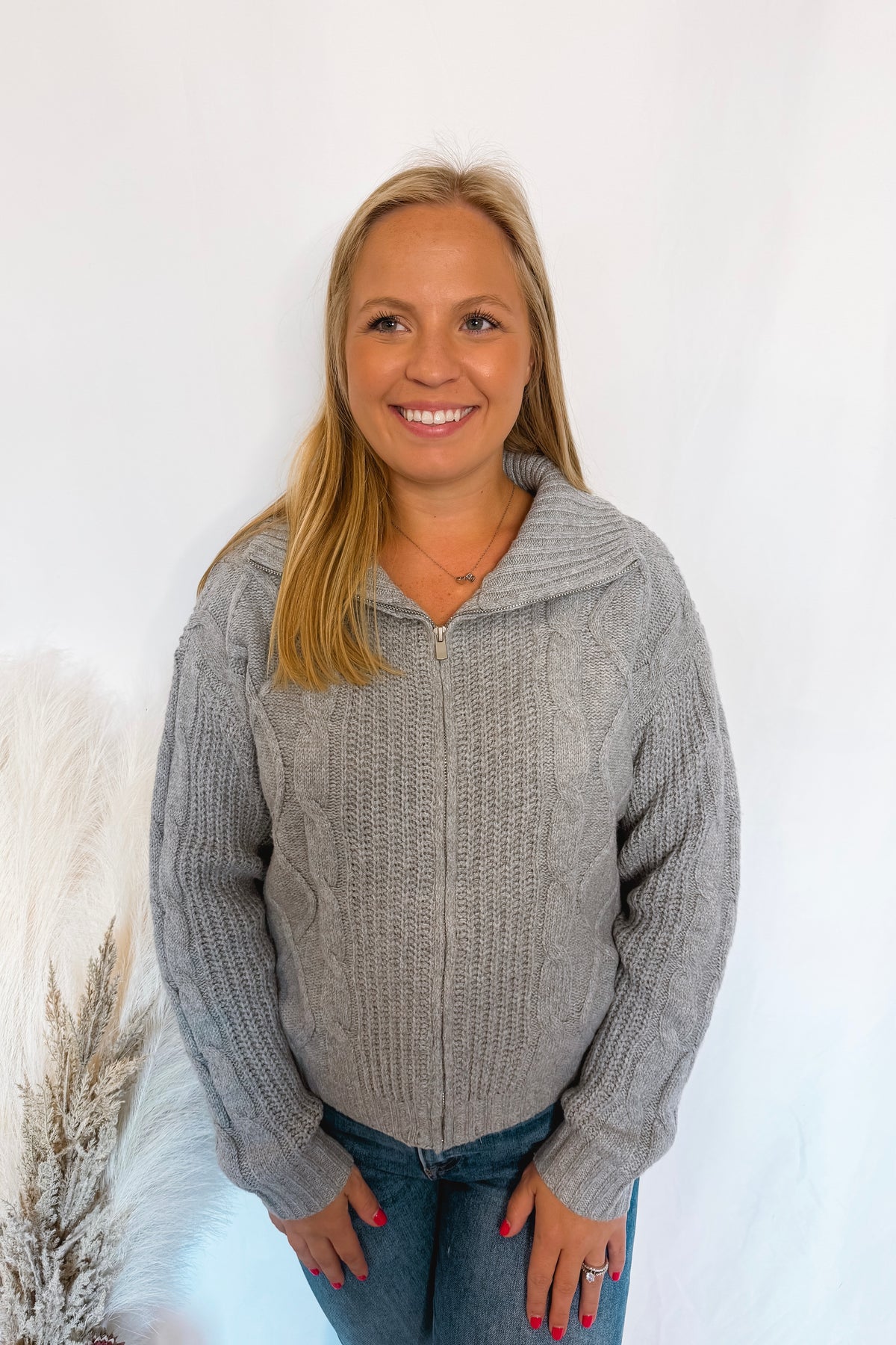 Grey Days Zip Up Cable Knit Sweater - Grey