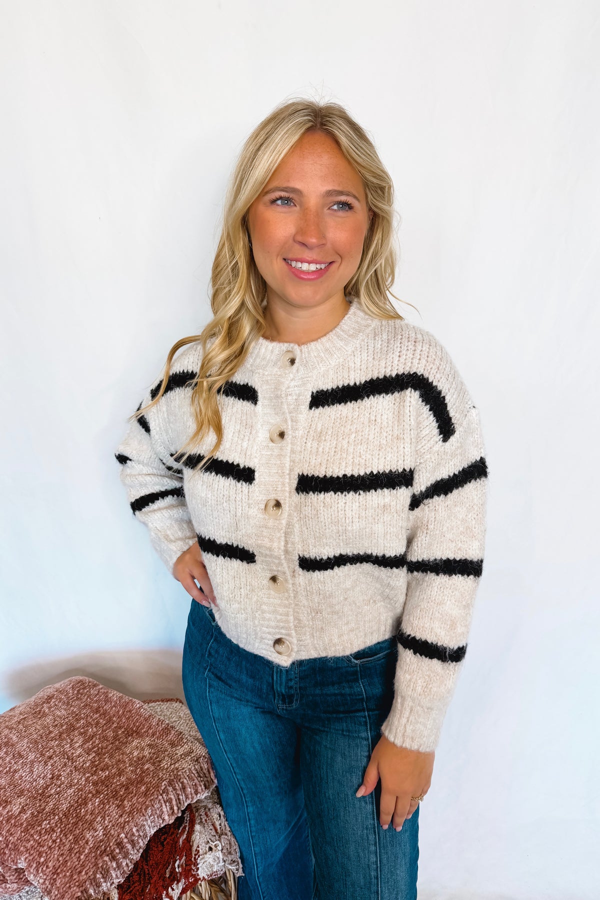 Cool Stroll Striped Button Cardigan - Ivory/Black