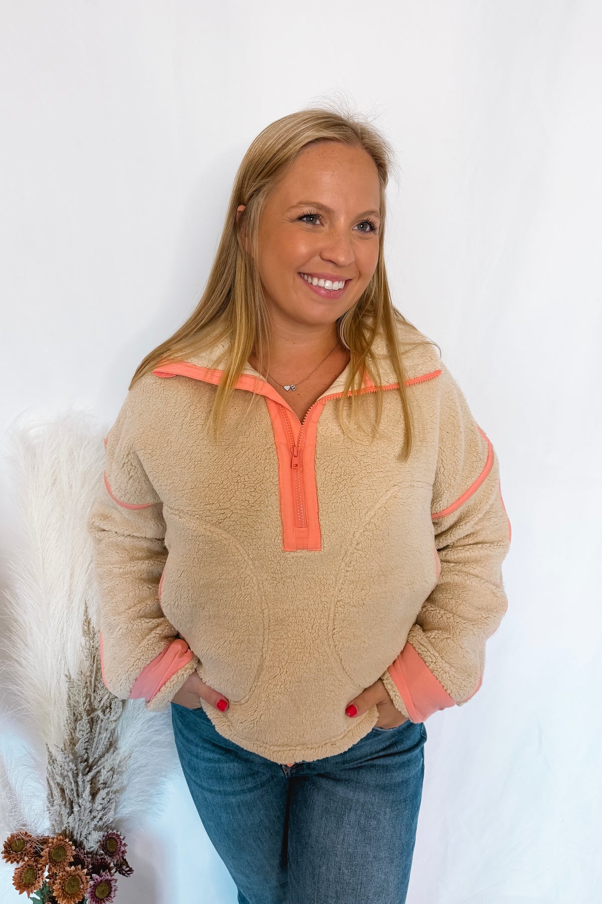 Staying Warm Sherpa Quarter Zip Pullover - Tan