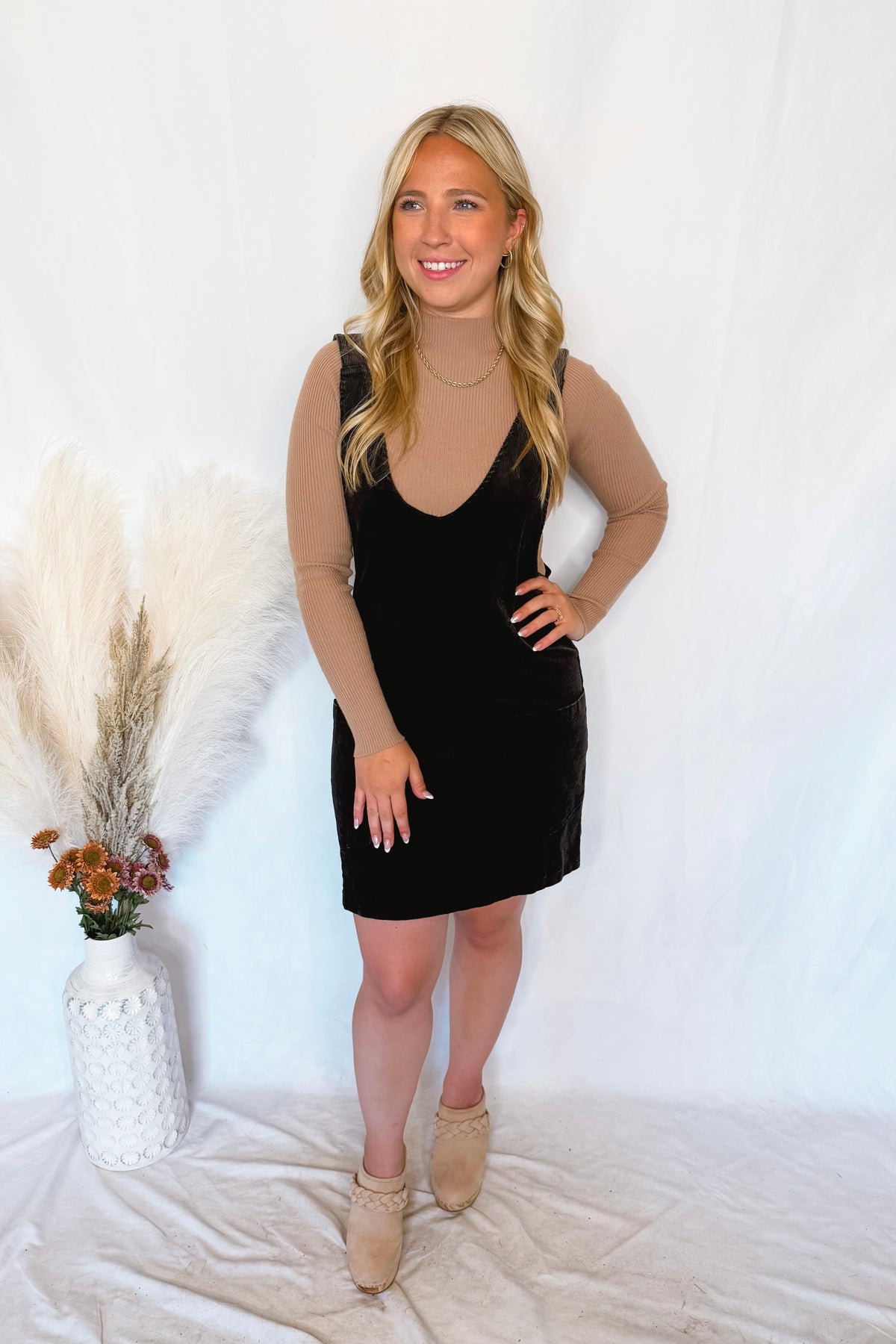 Fall Boardwalk Corduroy Pinafore Dress - Black