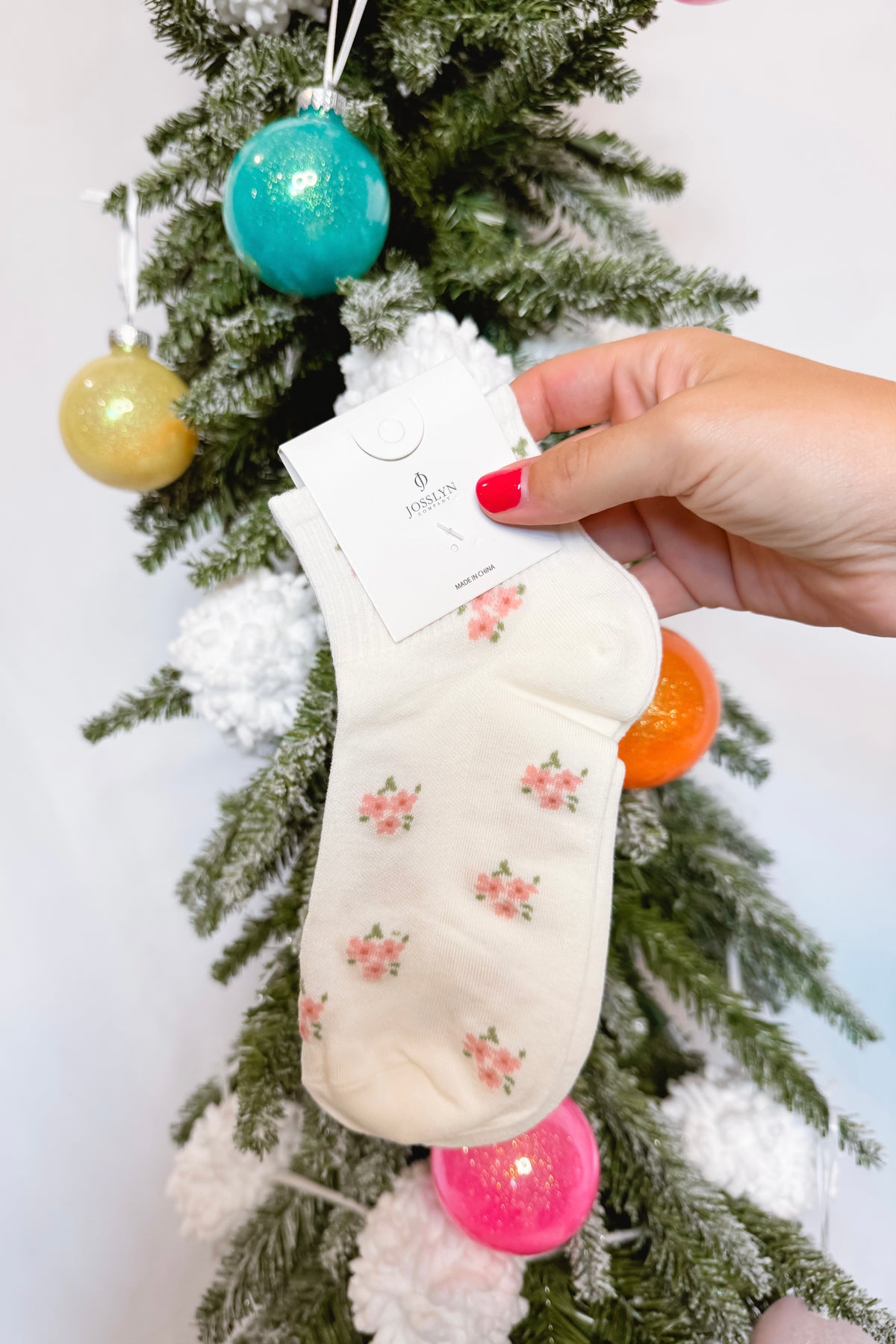 Dainty Pink Floral Ankle Socks - Pink/Ivory