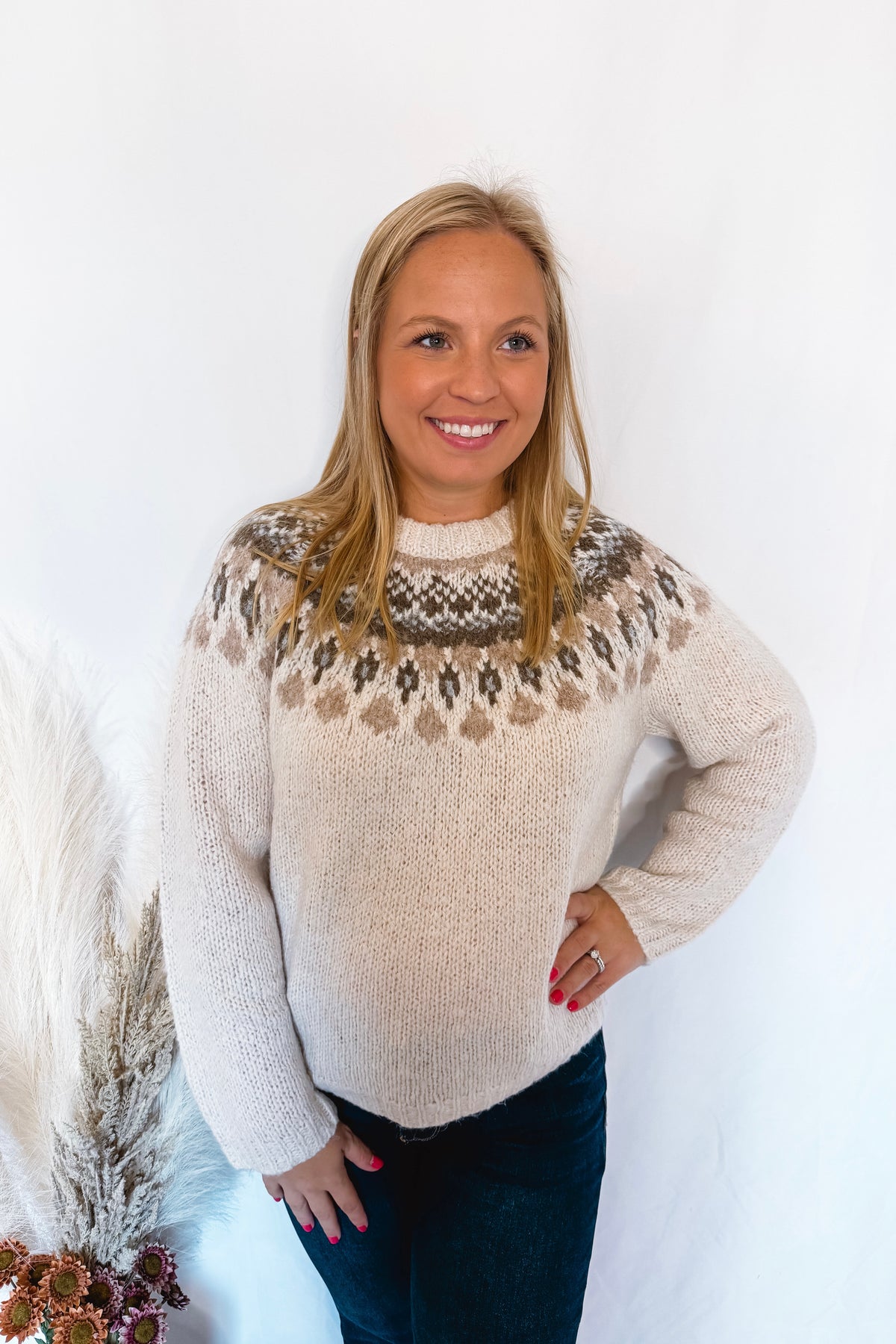 Toasty Warm Fair Isle Crew Knit Sweater - Ivory