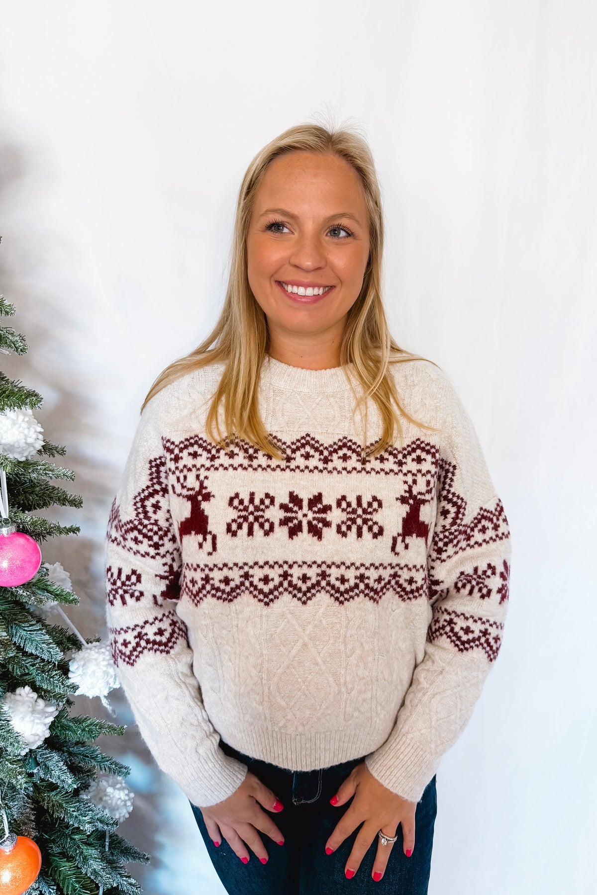 Snow Vibes Deer Crew Knit Sweater - Ivory