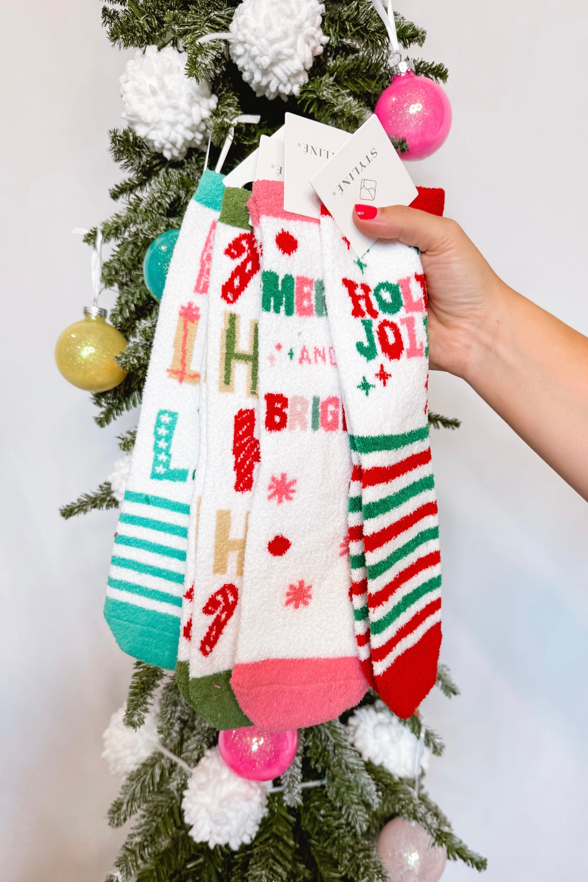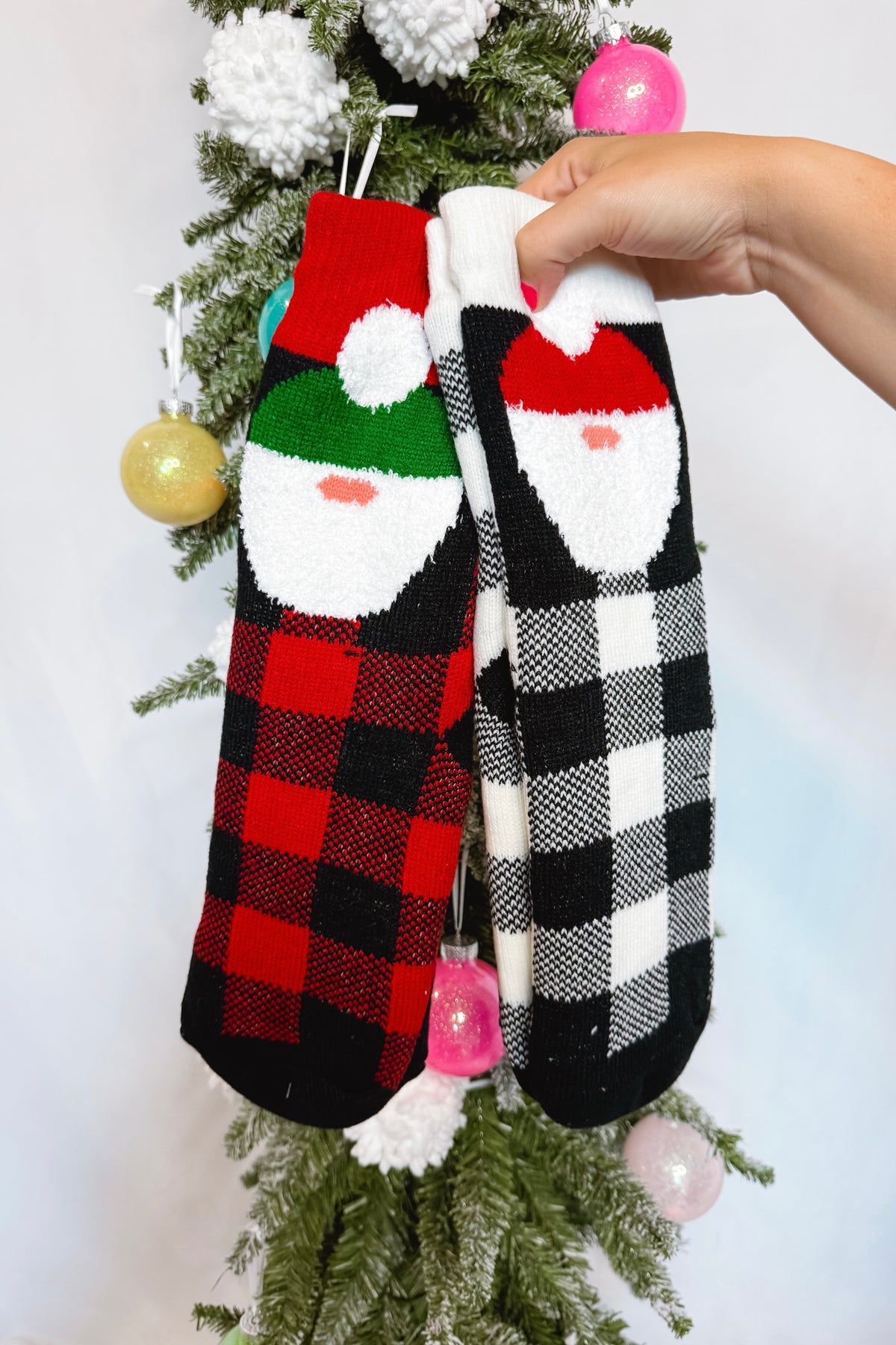 Checkered Santa Holiday Sherpa Lined Socks - Pick Color