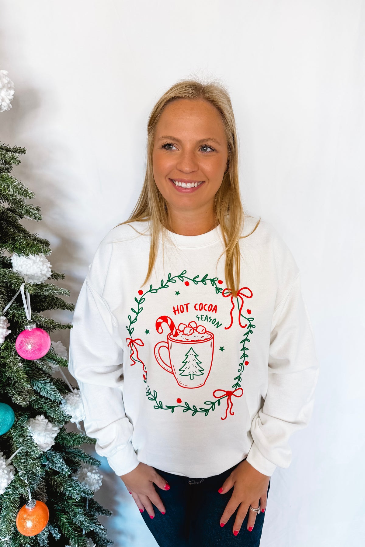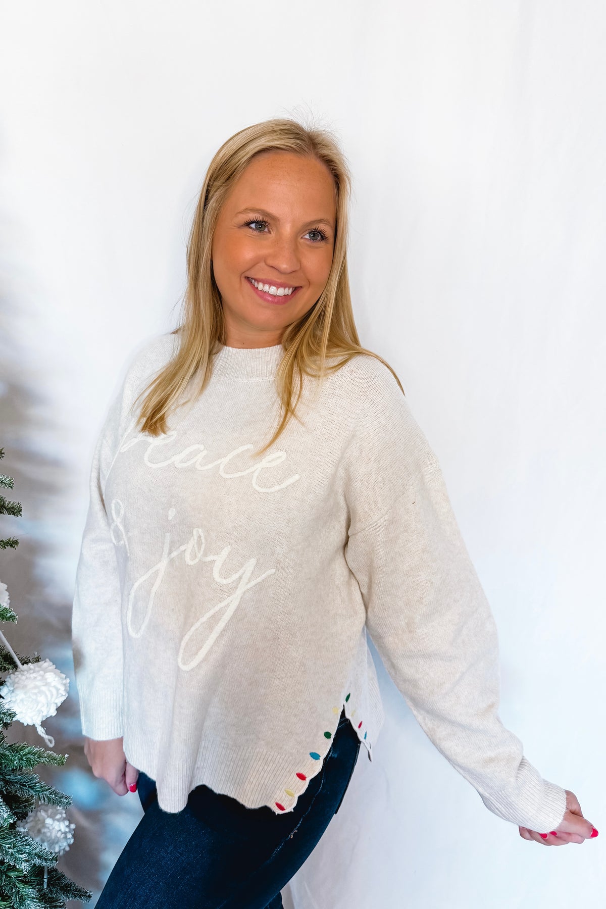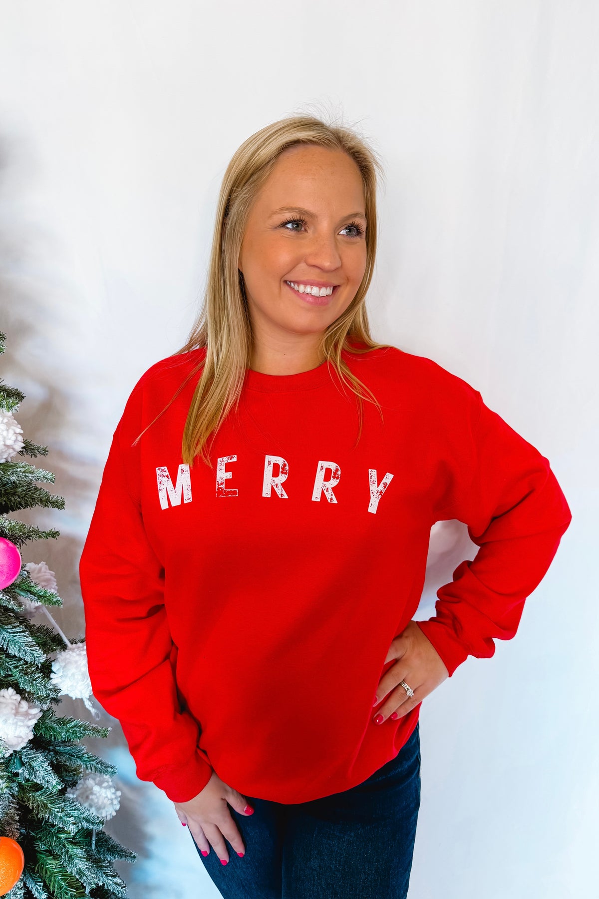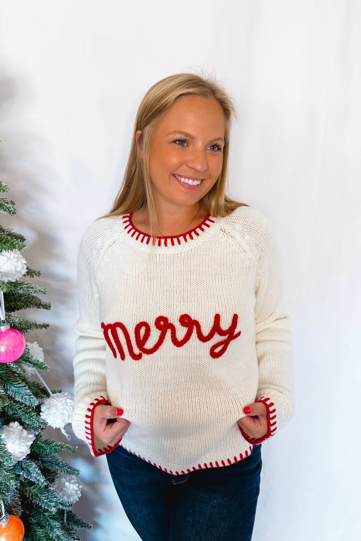 Merry Crochet Trim Crew Sweater- Ivory/Red