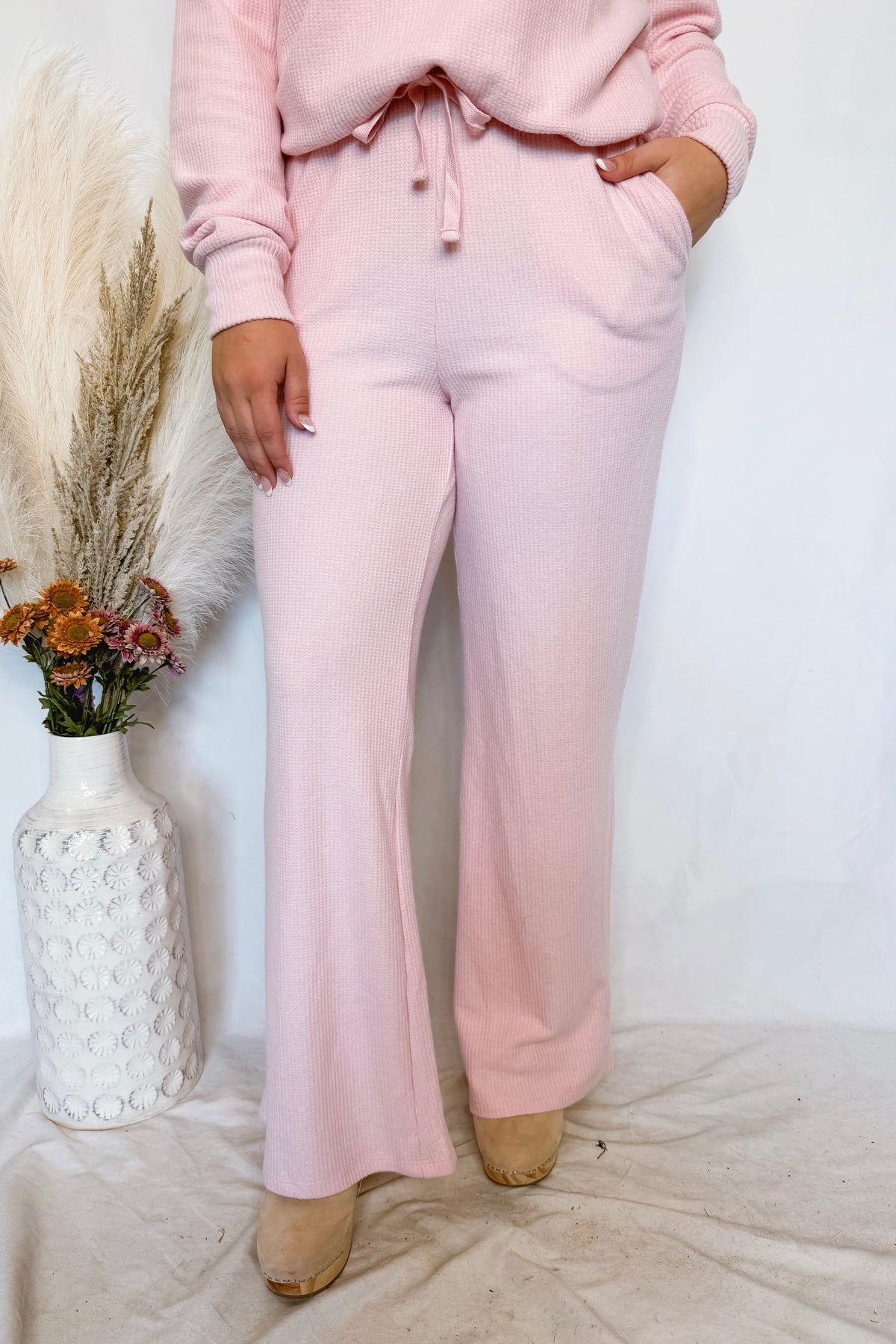 Soft Focus Waffle Knit Drawstring Pants - Light Pink